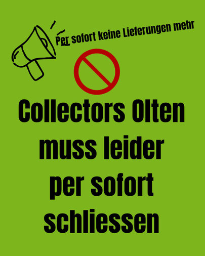 Leider müssen wir euch mitteilen, dass Collectors per sofort den Betrieb einstellen muss.